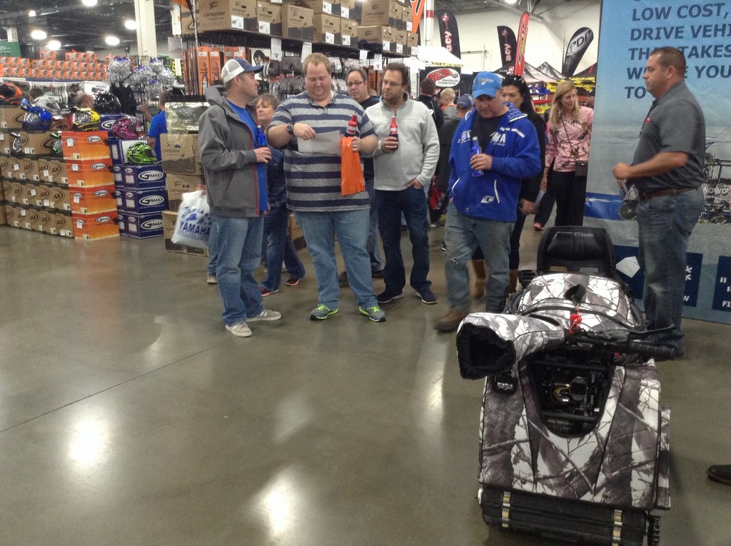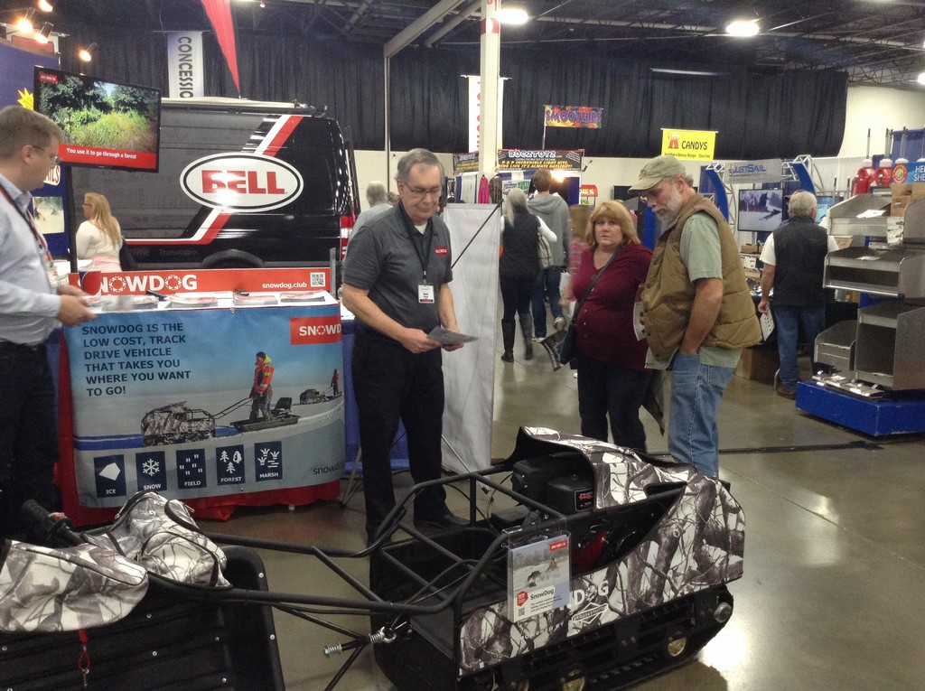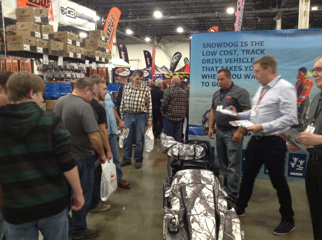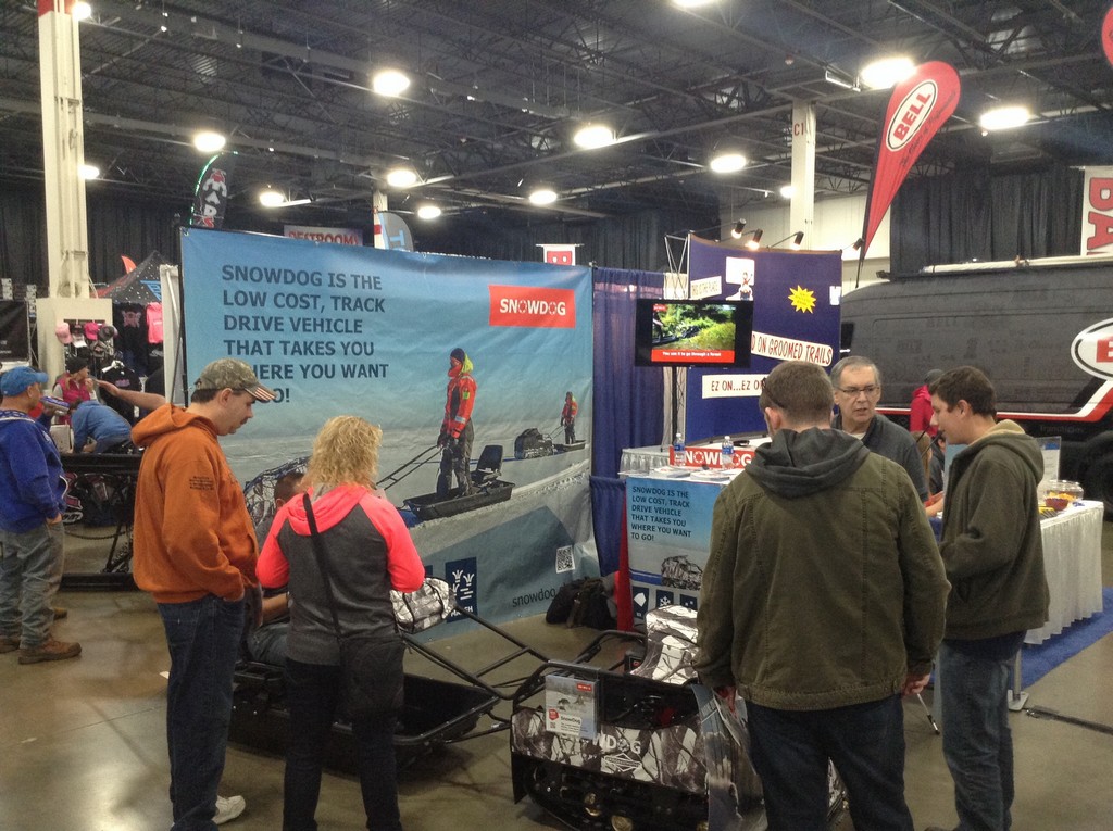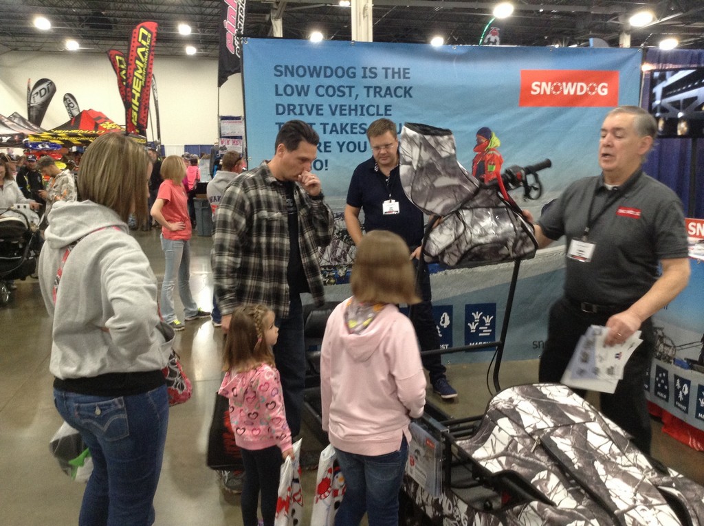 Last weekend Snowdog participated in Snowmobile USA Show and Sale (Novi, Michigan, USA) and Sask Snowmobile Show & Sale (Saskatoon, Saskatchewan, Canada). Both expos went wonderful. Snowdog made some new friends, and got a chance to see old ones - it is so nice to meet again! Our managers didn`t have a free minute interacting with booth visitors, who asked about Snowdog models or just chatted and made their suggestions: for instance beautiful ladies came up with the idea of pink Snowdog covers for “Girl Snowdog”, real (well, almost!) Yeti made an appearance to check out this new snow machine. We even met the Fishing World Champion and arranged to take Snowdogs and go fishing together… were too carried away by a conversation to take a picture though :)